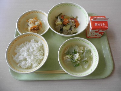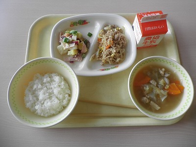 【A食】ご飯 チキン南蛮 切干大根と小松菜のごま和え 打ち豆のスープ |