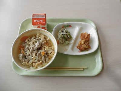 【B食】豚ねぎうどん 鶏天ぷら ごま和え |