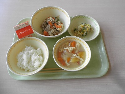 【B食】ご飯 炒り鶏 もやしの海苔和え さつま芋の味噌汁 |