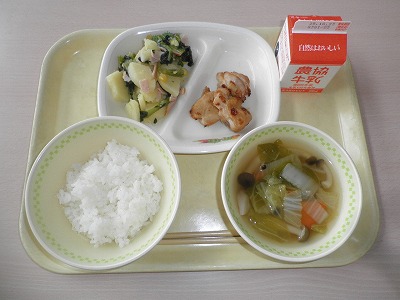 【A食】ご飯 鶏の照り焼き 小松菜とじゃが芋のサラダ 白菜のスープ |
