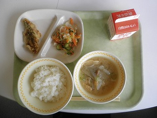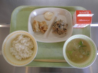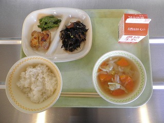 かぶと厚揚げの煮物 じゃが芋とわかめの味噌汁 |