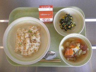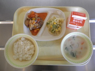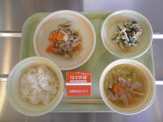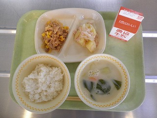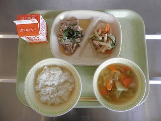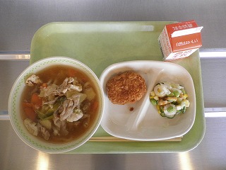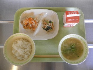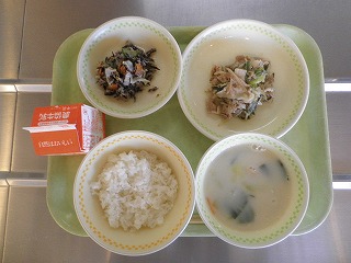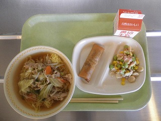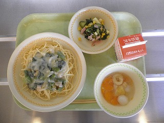 スパゲティサラダ チンゲン菜入り豆乳スープ |