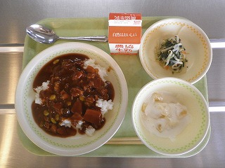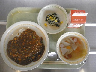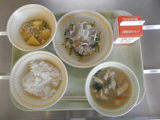 じゃが芋のそぼろ煮 もやしの味噌汁 |