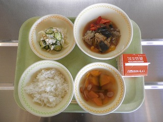 のリ酢和え 打ち豆豆乳スープ 梨ゼリー |