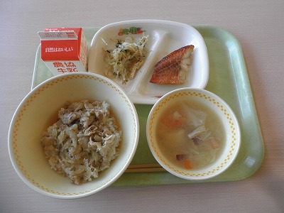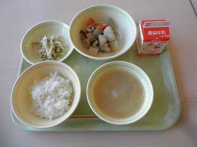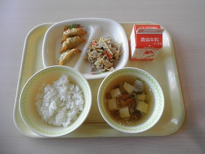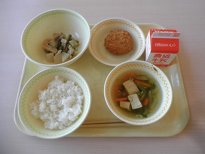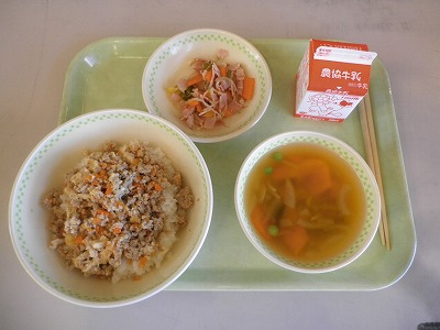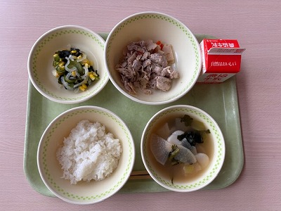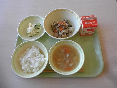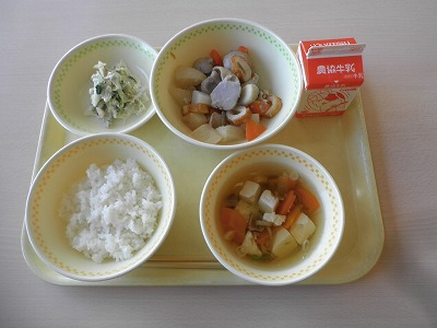 【B食】ご飯 炒り鶏 もやしの海苔和え さつま芋の味噌汁 |