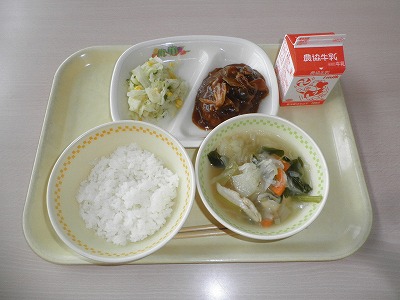 【A食】ご飯鶏肉のレモン煮 キャベツのサラダ 豚汁 |