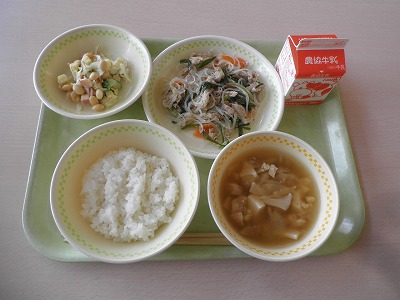 【A食】ご飯 春雨の中華風炒め物 大豆のサラダ ピリ辛スープ |