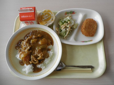 【A食】カレーライス コロッケ きゅうりの梅肉和え ゼリー |