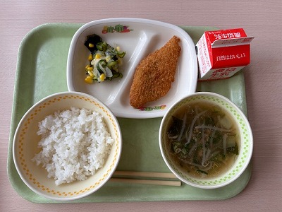 【B食】ご飯 白身魚のフライ わかめの酢の物 坦々スープ