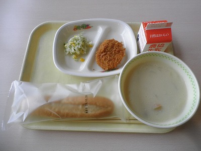 【A食】コッペパン かぼちゃのひき肉フライ コールスローサラダ クリームシチュー |